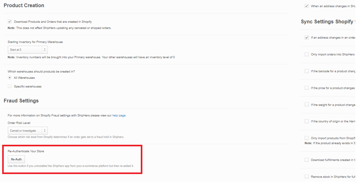 - At the bottom of the page you will find a section called Re-Authenticate Your Store.